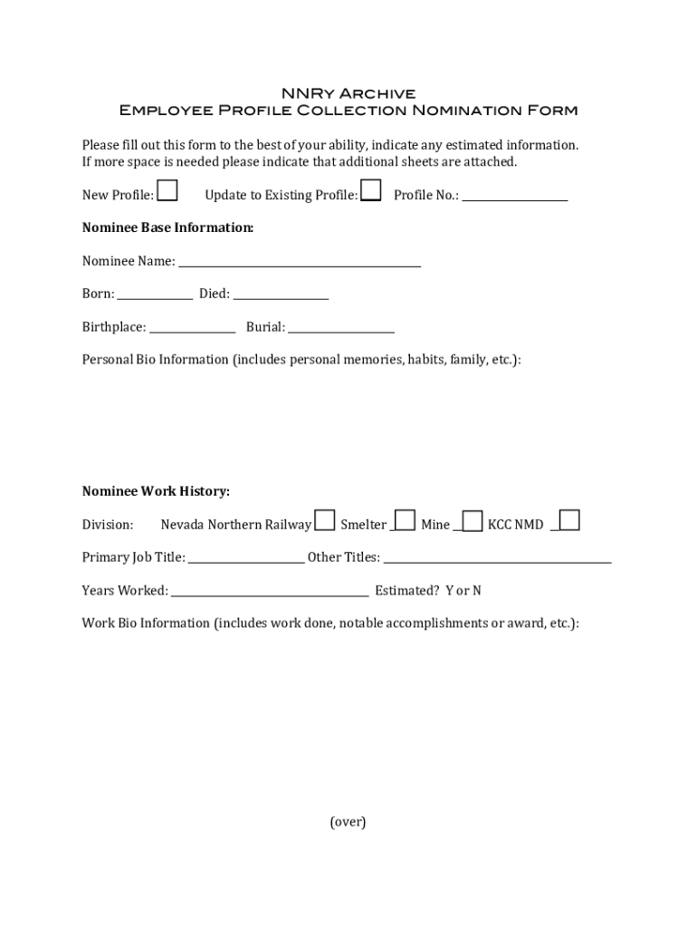 NNRy Archive Employee Profile Collection Program Program Purpose: To share profiles of the work and personal history of employees of the Nevada Northern Railway and Kennecott Nevada Mines Division