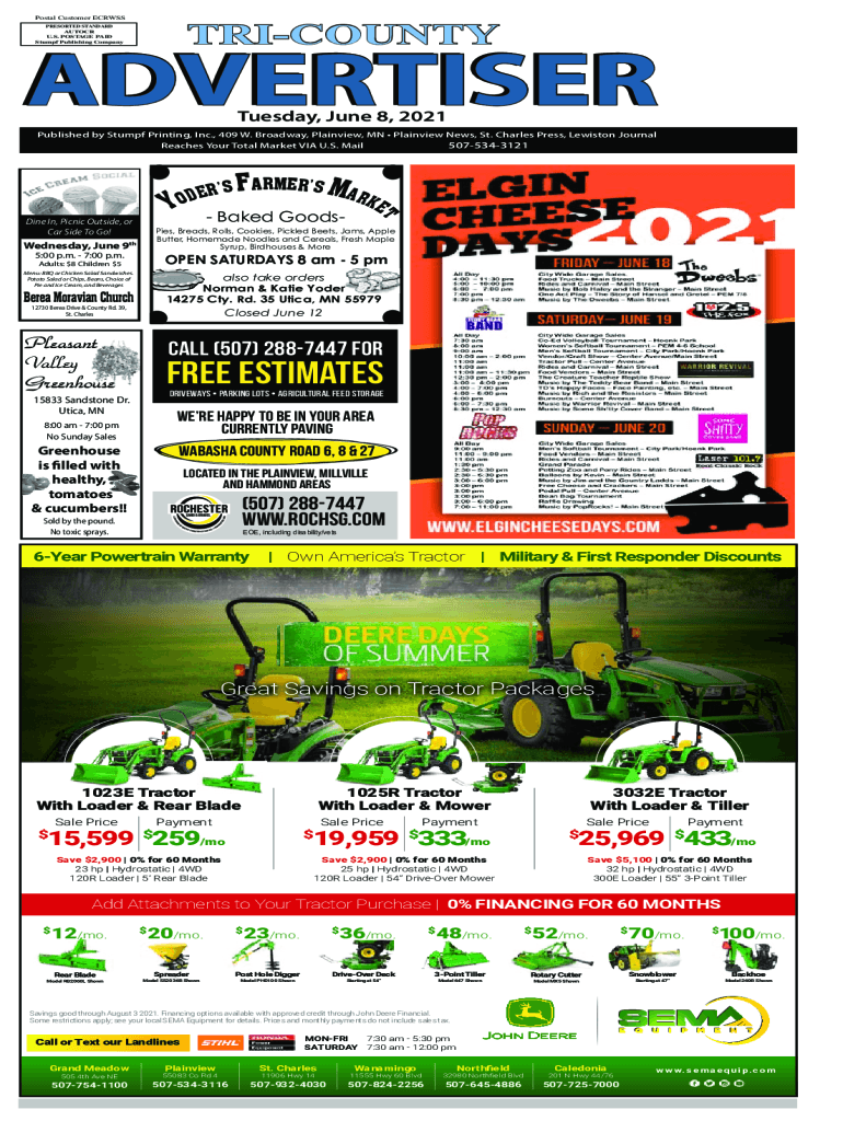 TRICOUNTYPostal Customer ECRWSS PRESORTED STANDARD AUTOCR U.S. POSTAGE PAID Stumpf Publishing CompanyADVERTISER Tuesday, June 8, 2021Published by Stumpf Printing, Inc., 409 W. Broadway, Plainview,