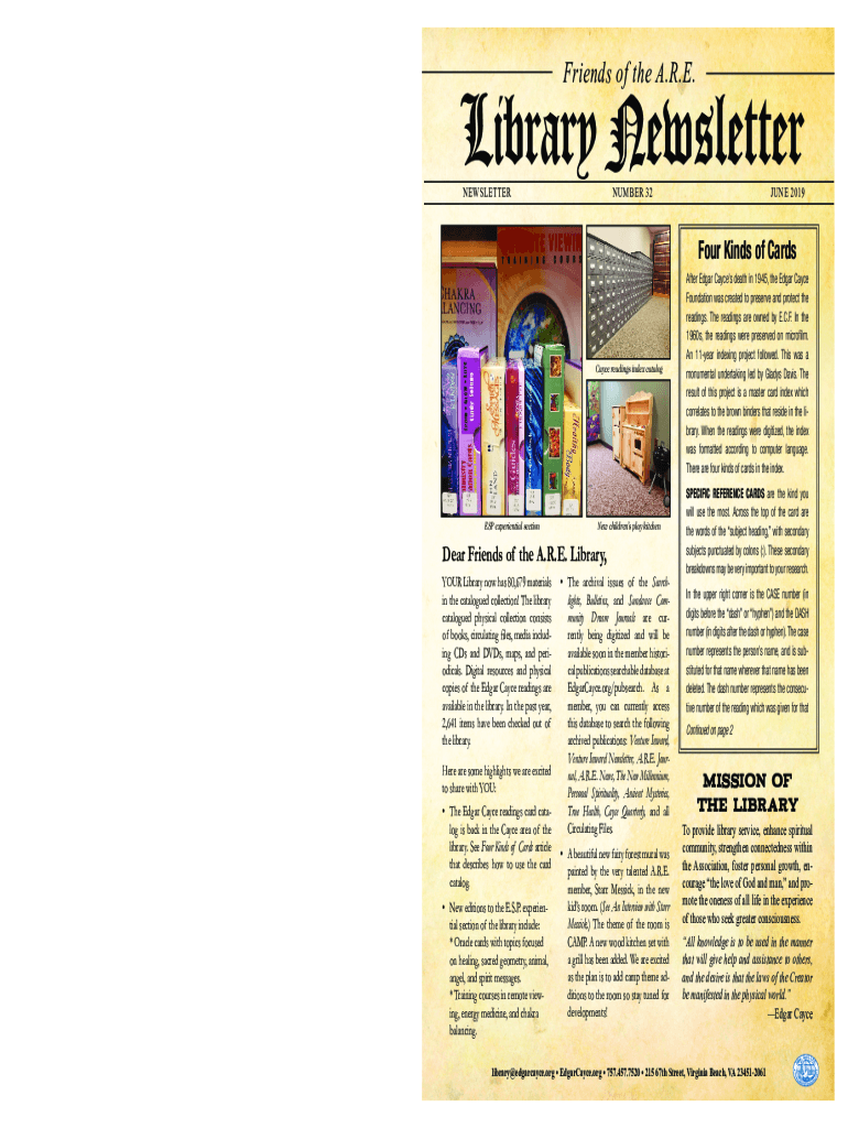 4Friends of the A.R.E. Friends of the A.R.E. Library Newsletter Circulating Files Affirmations Am I My Brothers Keeper Angels and Archangels: Hallie Angels and Archangels: Michael A.R.E. Clinic Research
