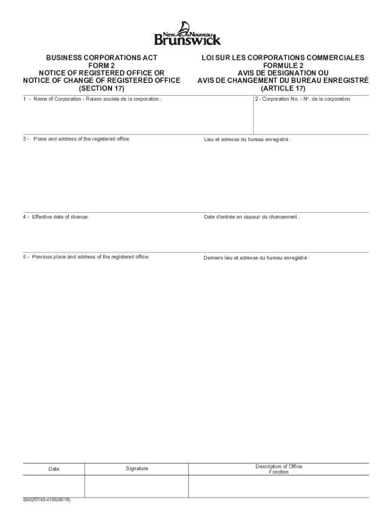 Get the free Business Corporations Act Form 2 Notice of Registered ...