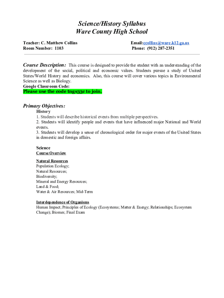 Science/History Syllabus