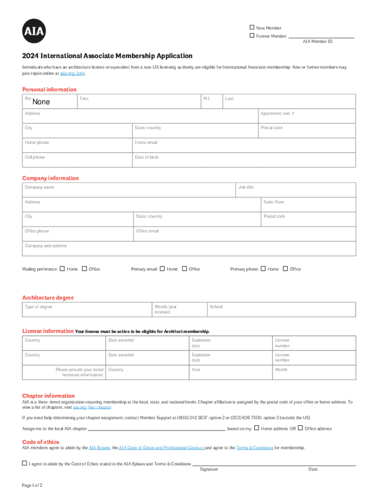 Former Member Member ID2024 International Associate Membership Application