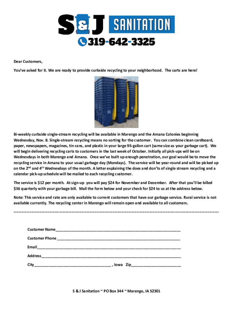 You've asked for it. We are ready to provide curbside recycling to your neighborhood. The carts are here! Biweekly curbside single stream recycling will be available in Mango and the