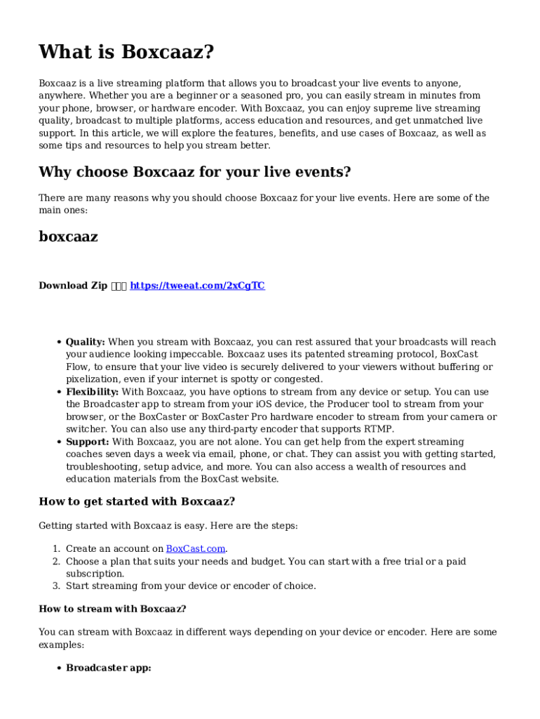 What is Boxcaaz? Boxcaaz is a live streaming platform that allows you to broadcast your live events to anyone, anywhere. Whether you are a beginner or a seasoned pro, you can easily stream in minutes
