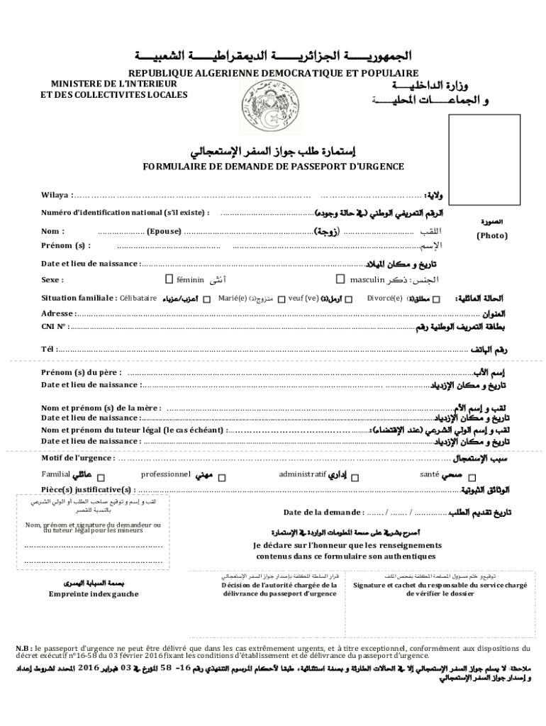 ___JrA ___AjfA ___jAlA ___iA REPUBLIQUE ALGERIENNE DEMOCRATIQUE ET POPULAIRE____aAfA iAk ___A PB___BA MINISTERE DE LINTERIEUR ET DES COLLECTIVITES LOCALESBVNmA jnA kAU K iBNmG FORMULAIRE DE DEMANDE
