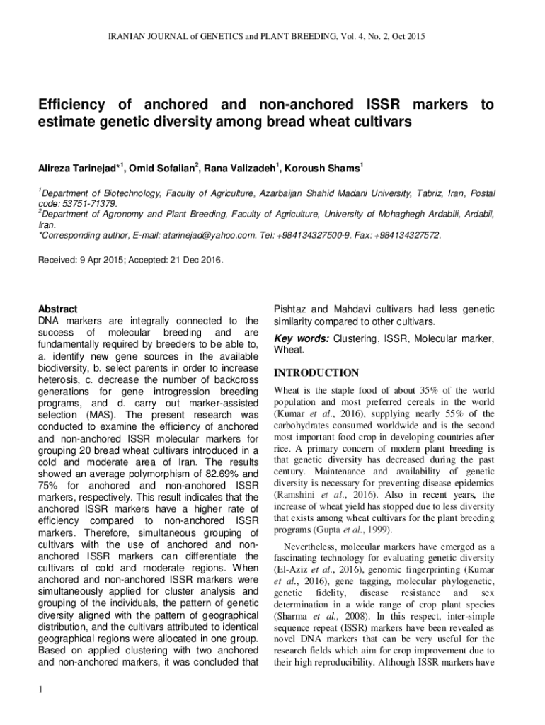 Get the free Efficiency of anchored and non-anchored ISSR markers to ... - ijgpb journals ikiu ac