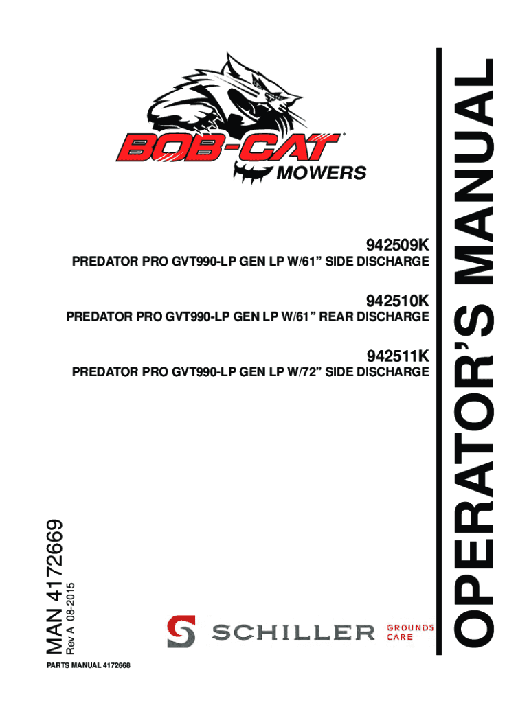 MOWERS942509K PREDATOR PRO GVT990LP GEN LP W/61 SIDE DISCHARGE942510K PREDATOR PRO GVT990LP GEN LP W/61 REAR DISCHARGE942511KRev A 082015MAN 4172669PREDATOR PRO GVT990LP GEN LP W/72 SIDE DISCHARGEPARTS