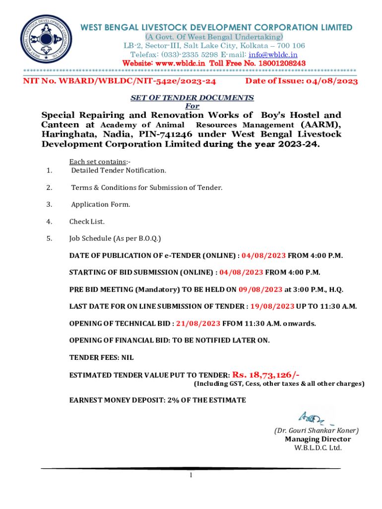 Get the free Special Repairing and Renovation Works of Boy's Hostel and
