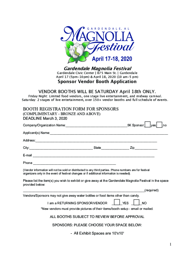 April 17 (5pm10pm) & April 18, 2020 (10 am5 pm)Sponsor Vendor Booth Application