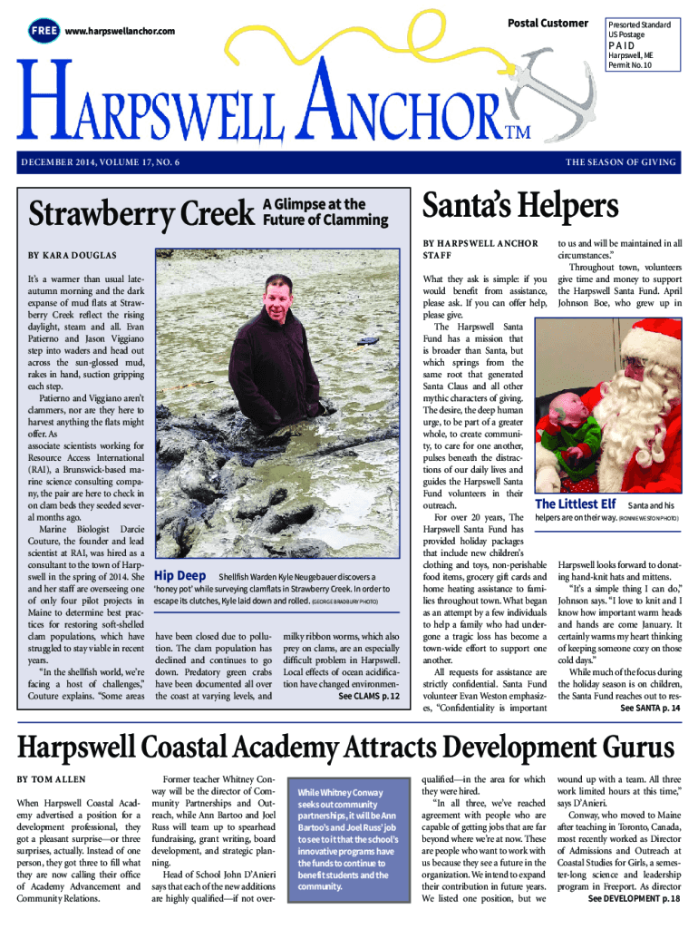 Postal CustomerFREE www.harpswellanchor.comPresorted Standard US PostagePA I DHarpswell, ME Permit No. 10DECEMBER 2014, VOLUME 17, NO. 6Strawberry CreekTHE SEASON OF GIVINGA Glimpse at the Future