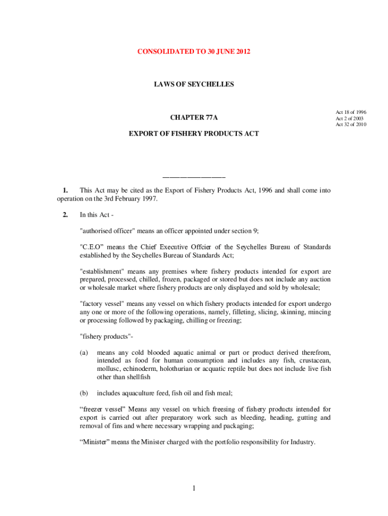 Get the free Export of Fishery Products ActSeychelles Legal Information ...
