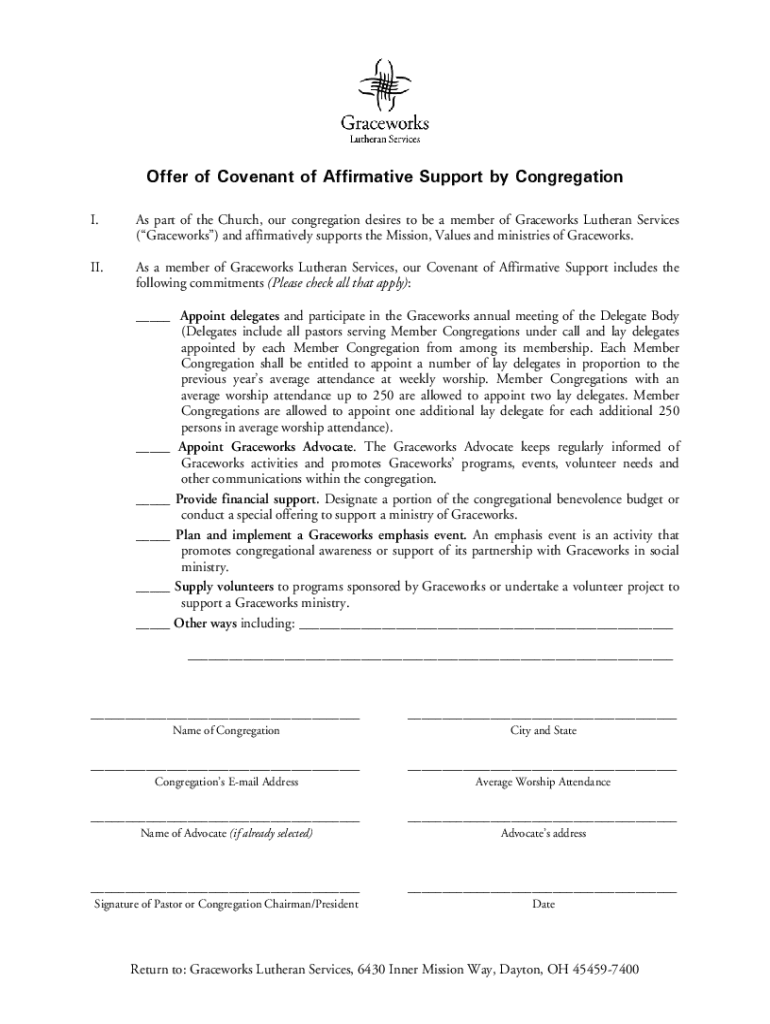 Offer of Covenant of Affirmative Support by Congregation
