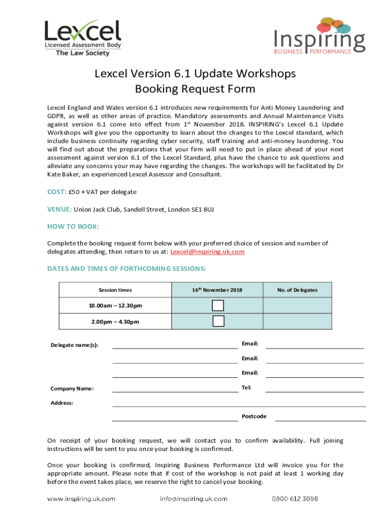 Excel Version 6.1 Update Workshops Booking Request Form Excel England and Wales version 6.1 introduces new requirements for Anti Money Laundering and GDPR, as well as other areas of practice. Mandatory