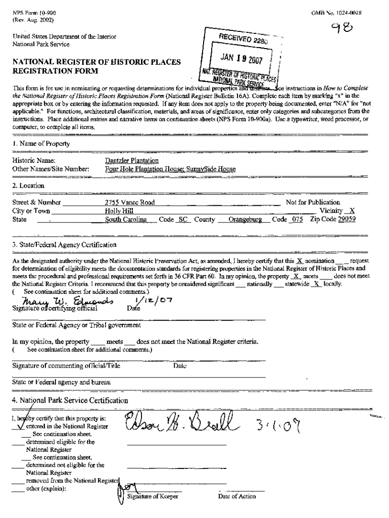 OMBNo. 10240018NFS Form 10900 (Rev. Aug. 2002)United States Department of the Interior National Park ServiceS|VEog^.,NATIONAL REGISTER OF HISTORIC PLACESJAN 1 9 2007\'\" HBHM 1SSWThis form is for