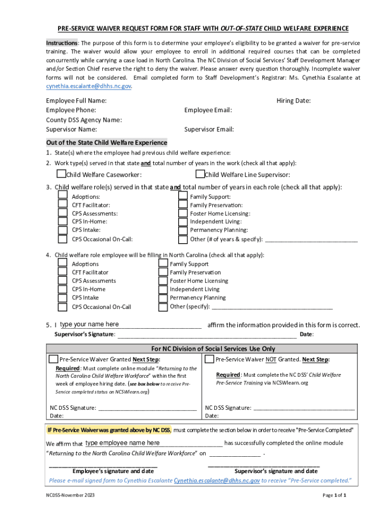 PRESERVICE WAIVER REQUEST FORM FOR STAFF WITH OUTOFSTATE CHILD WELFARE EXPERIENCE