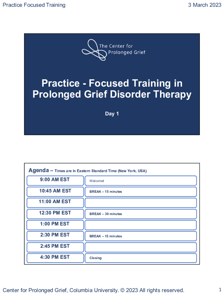 Get the free Practice - Focused Training in Prolonged Grief Disorder Therapy