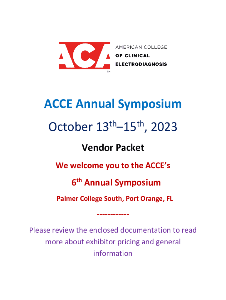 ACCE Annual Symposium October 13th15th, 2023 Vendor Packet We welcome you to the ACCEs6th Annual Symposium Palmer College South, Port Orange, FLPlease review the enclosed documentation to read more