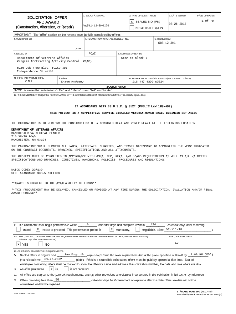 The notes to offerors - VA Vendor Portal is a document that has to be filled-out and signed for specific purposes. Then, it is furnished to the actual addressee to provide some info and data. The completion and signing may be done manually in hard copy or with a trusted service e. g. PDFfiller. Such applications help to complete any PDF or Word file online. It also lets you edit it depending on the needs you have and put a legal digital signature. Once you're good, the user ought to send the notes to offerors - VA Vendor Portal to the respective recipient or several recipients by mail and also fax. PDFfiller is known for a feature and options that make your Word form printable. It has a variety of options for printing out. No matter, how you send a form - in hard copy or by email - it will always look well-designed and clear. In order not to create a new editable template from the beginning over and over, turn the original file into a template. After that, you will have a rewritable sample.