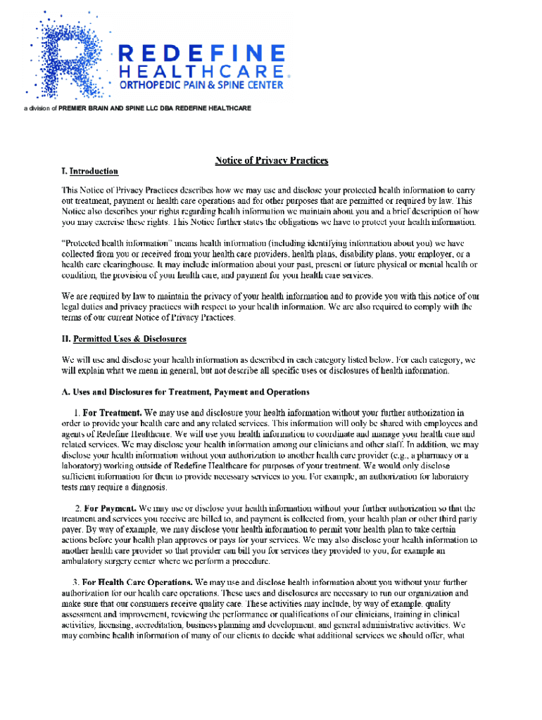 A division of PREMIER BRAIN AND SPINE LLC DBA REDEFINE HEALTHCAREservices are no longer needed, and whether certain treatments are effective. We may also provide your health