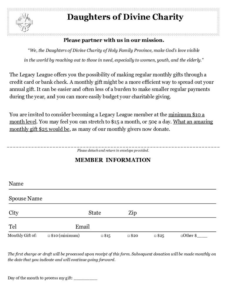 Fill out your daughters of divine charity online with pdfFiller!