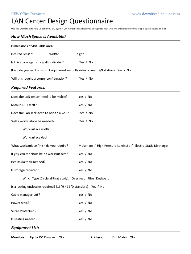 Fill out your lan center design questionnaire online with pdfFiller!