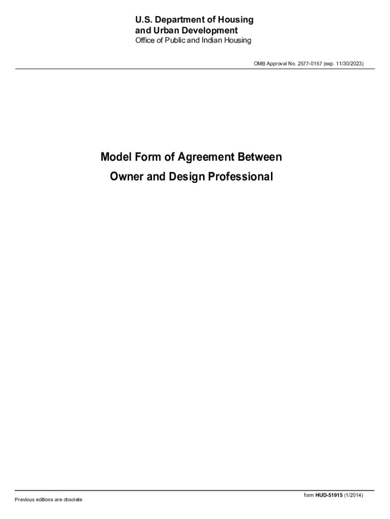 U.S. Department of Housing and Urban Development Office of Public and Indian HousingOMB Approval No. 25770157 (exp. 11/30/2023)Model Form of Agreement Between Owner and Design ProfessionalPrevious