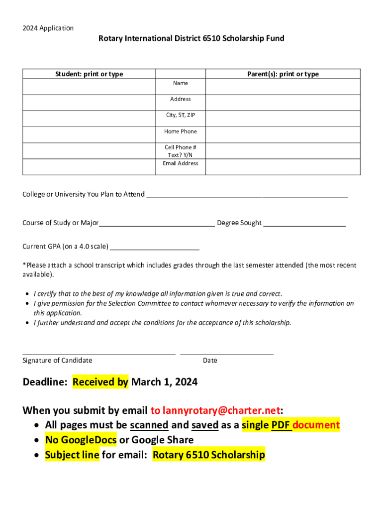 How to fill out rotary district 6510 scholarship