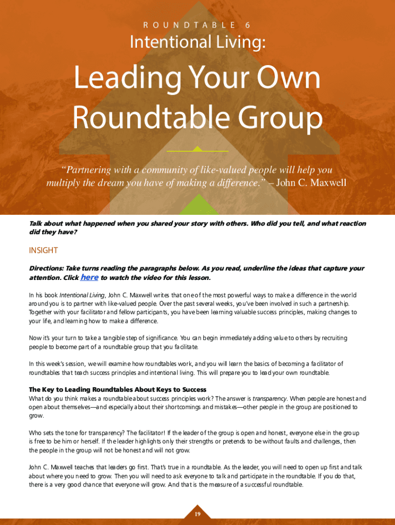 R O U N D T A B L E6Intentional Living:Leading Your Own Roundtable Group Partnering with a community of likevalued people will help you multiply the dream you have of making a difference. John C.