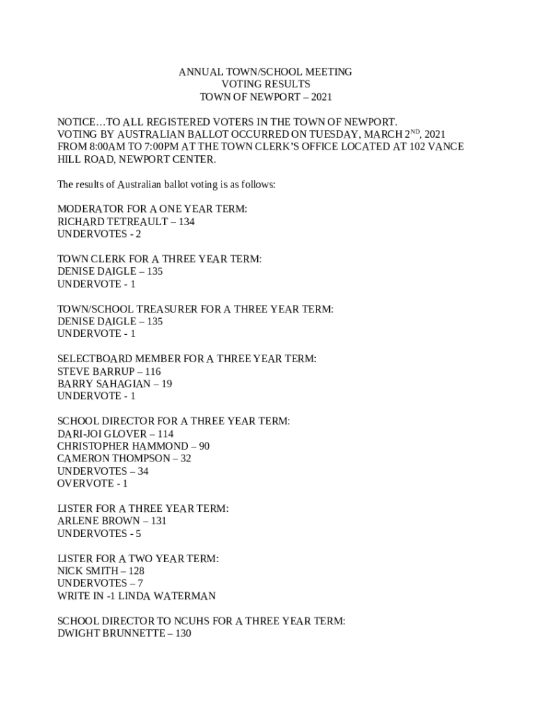 - Search for the Newport approves school budget; elects board members form from the Search box on the top of the main page.