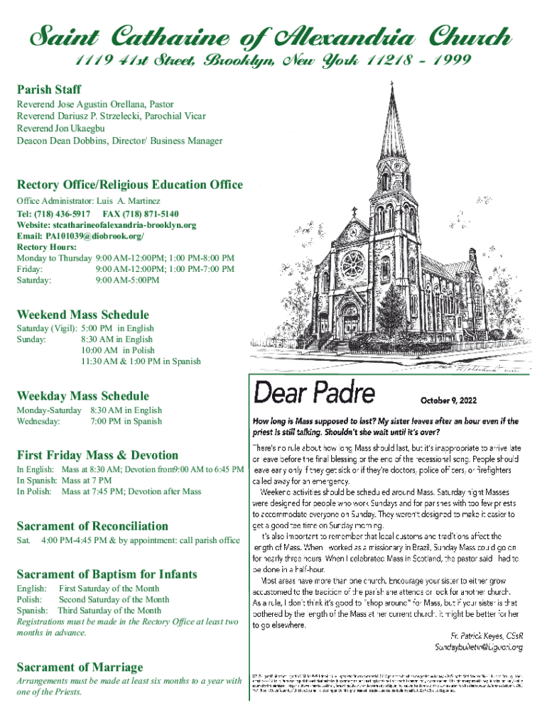 1119 41st Street, Brooklyn, New York 11218 1999Parish Staff Reverend Jose Agustin Orellana, Pastor