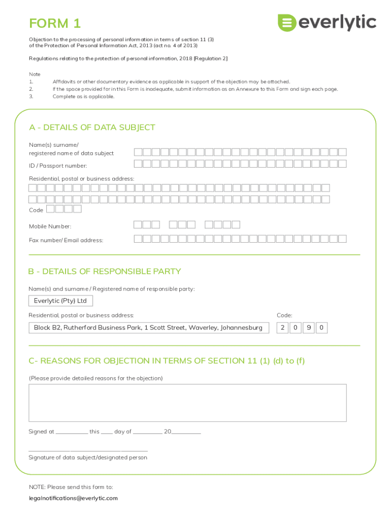 Get the free objection notice to the processing of personal information