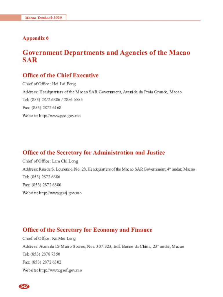Macao Yearbook 2020Appendix 6Government Departments and Agencies of the Macao