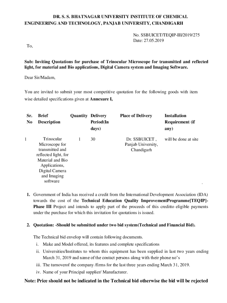 Get the free Price should not be indicated in the Technical bid otherwise ...