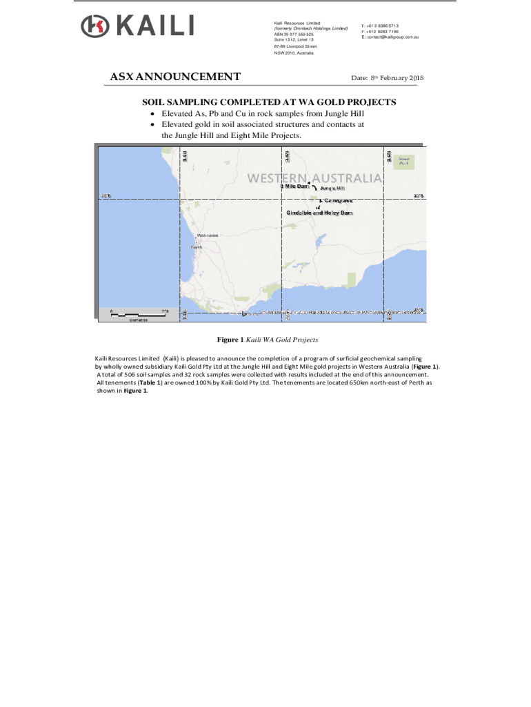 Kaili Resources Limited(formerly Omnitech Holdings Limited) ABN 39 077 559 525 Suite 1312, Level 13T: +61 2 8386 5713 F: +612 9283 7166E: contact@kailigroup.com.au8789 Liverpool Street NSW 2010, AustraliaASXANNOUNCEMENTDate: