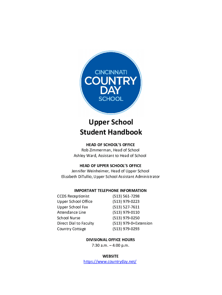 Upper School Student Handbook HEAD OF SCHOOLS OFFICE Rob Zimmerman, Head of School Ashley Ward, Assistant to Head of School HEAD OF UPPER SCHOOLS OFFICE Jennifer Weinheimer, Head of Upper School Elizabeth