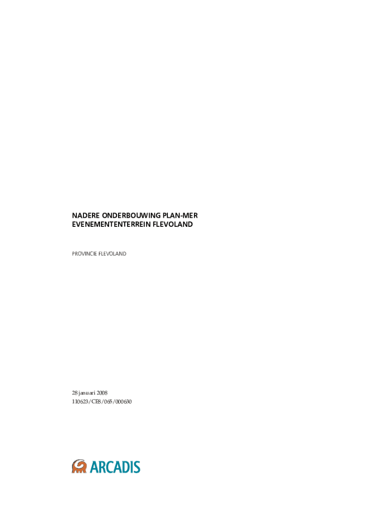 NADERE ONDERBOUWING PLANMER EVENEMENTENTERREIN FLEVOLANDPROVINCIE FLEVOLAND28 januari 2008 110623/CE8/065/000630NADERE ONDERBOUWING PLANMER EVENEMENTENTERREIN FLEVOLAND110623/CE8/065/000630ARCADIS2NADERE