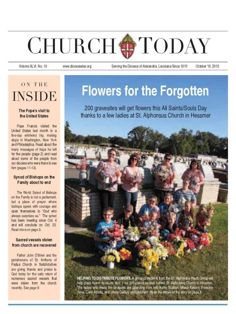 CHURCHVolume XLVI, No. 10www.diocesealex.orgTODAYServing the Diocese of Alexandria, Louisiana Since 1970October 19, 2015ON THEINSIDE The Popes visit to the United StatesFlowers for the Forgotten 200