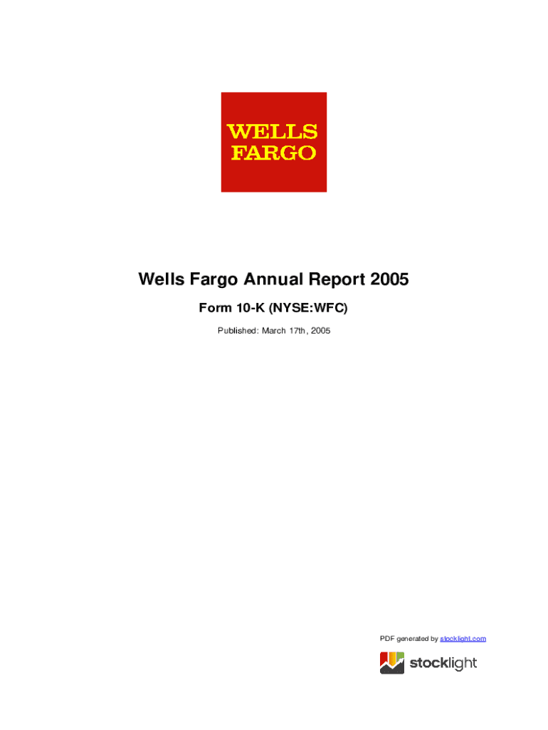 Wells Fargo Annual Report 2005 Form 10K (NYSE:WFC) Published: March 17th, 2005PDF generated by stocklight.comUNITED STATES SECURITIES AND EXCHANGE COMMISSION Washington, D.C. 20549Form 10K/A AMENDMENT
