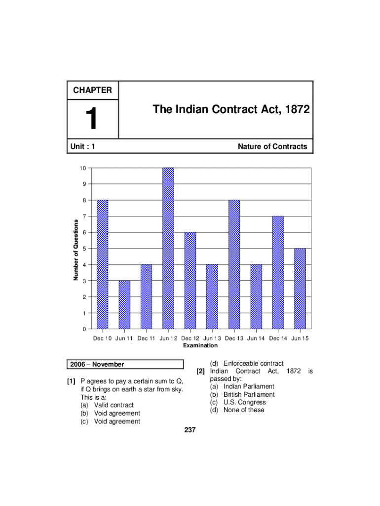 CHAPTER1The Indian Contract Act, 1872Unit : 1Nature of Contracts10 9 8 7 6 5 4 3 2 1 0 Dec 10 Jun 11 Dec 11 Jun 12 Dec 12 Jun 13 Dec 13 Jun 14 Dec 14 Jun 15 Examination2006 November(d) Enforceable
