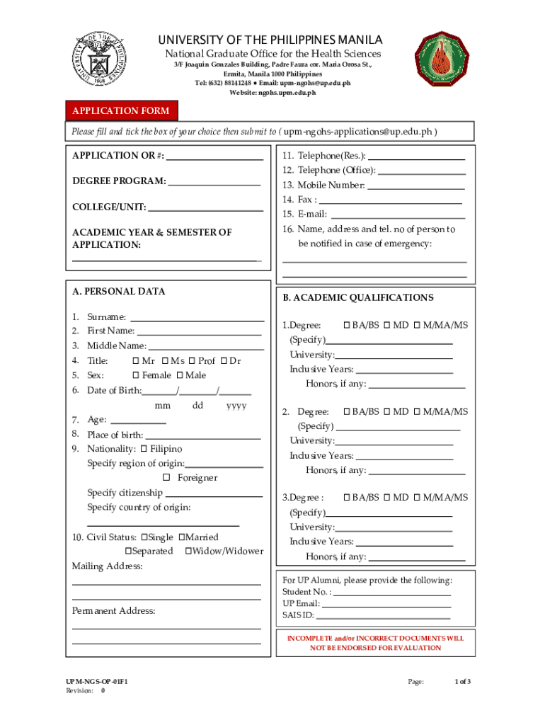 UNIVERSITY OF THE PHILIPPINES MANILA NationalGraduateOfficefortheHealthSciences 3/FJoaquinGonzalesBuilding,PadreFauracor.MariaOrosaSt., Ermita,Manila1000Philippines Tel:(632)88141248Email:upmngohs@up.edu.ph