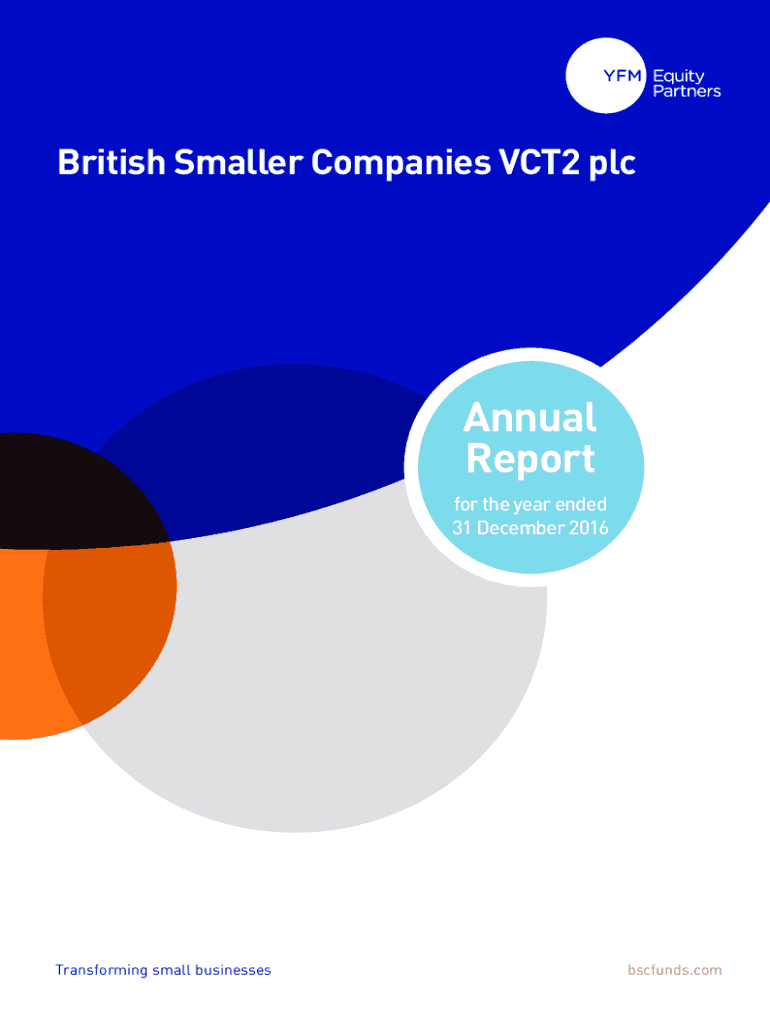 British Smaller Companies VCT2 plcAnnual Report for the year ended 31 December 2016Transforming small businessesbscfunds.comABOUT USBritish Smaller Companies VCT2 plc was formed in 2000 and invests