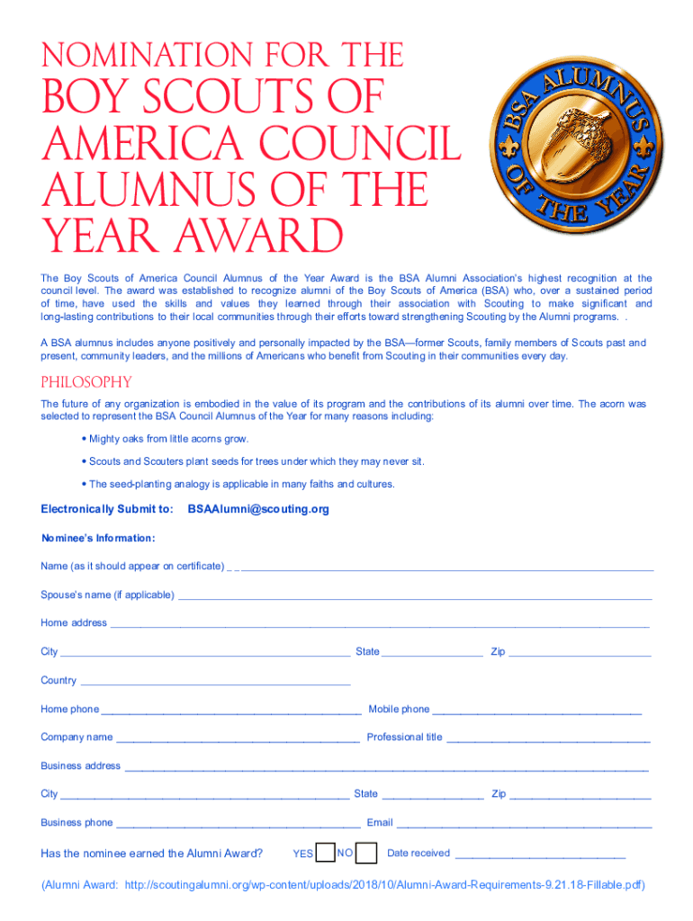 Get the free nomination for the - boy scouts of america council alumnus ...