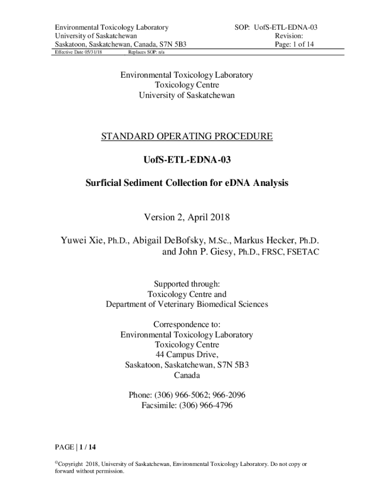 Effective Date 05/31/18SOP: UofSETLEDNA03
