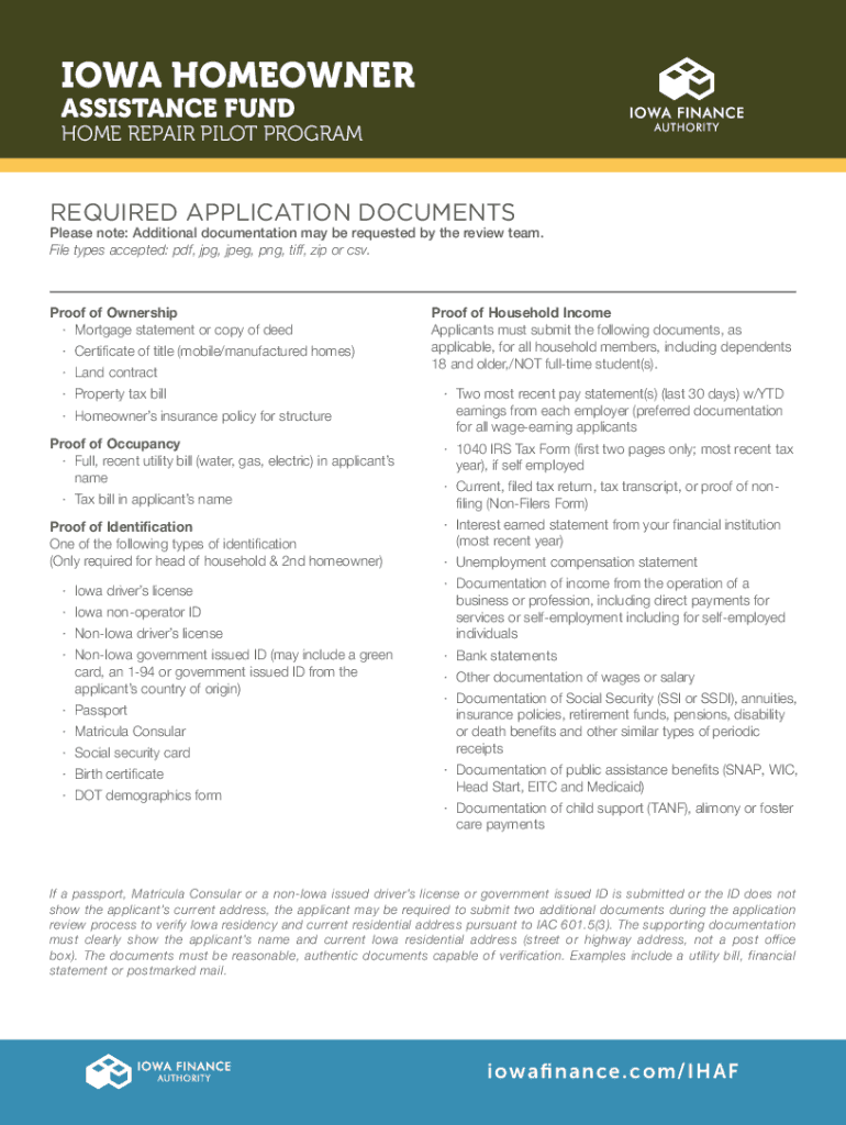 ASSISTANCE FUNDHOME REPAIR PILOT PROGRAMREQUIRED APPLICATION DOCUMENTSPlease note: Additional documentation may be requested by the review team.