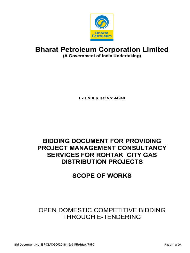 Bharat Petroleum Corporation Limited (A Government of India Undertaking)ETENDER Ref No: 44948BIDDING DOCUMENT FOR PROVIDING PROJECT MANAGEMENT CONSULTANCY SERVICES FOR ROHTAK CITY GAS DISTRIBUTION