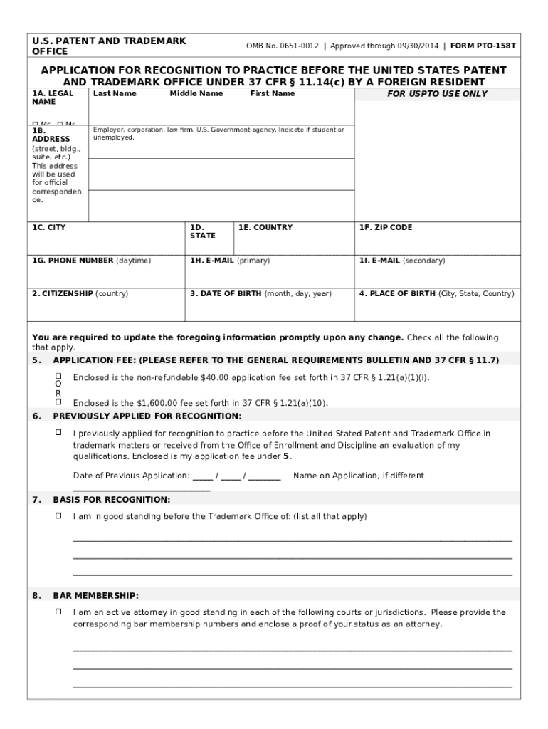 Instructions for the form Application for Recognition to Practice Before the United ...