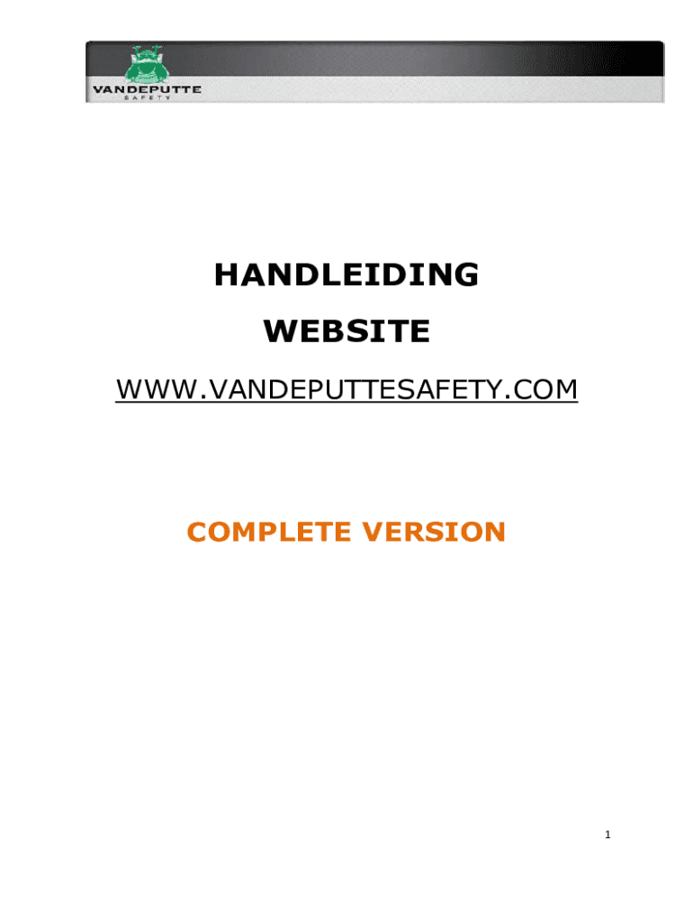 HANDLEIDING WEBSITE WWW.VANDEPUTTESAFETY.COMCOMPLETE VERSION1Contents 1. INLEIDINGNAVIGEREN ............................................................... 4 2. REGISTREREN AANLOGGEN .......................................................