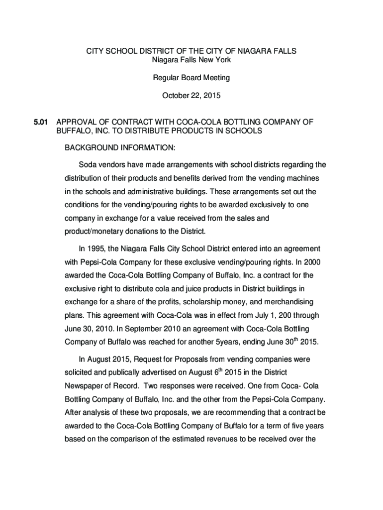 October 22, 20155.01APPROVAL OF CONTRACT WITH COCA COLA BOTTLING COMPANY OF