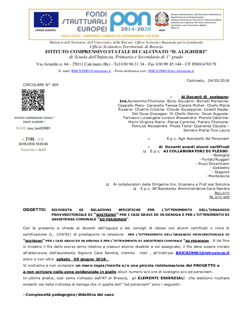 Ministero dellIstruzione, dellUniversit e della Ricerca Ufficio Scolastico Regionale per la LombardiaUfficio Scolastico Territoriale di BresciaISTITUTO COMPRENSIVO STATALE DI CALCINATO D. ALIGHIERI