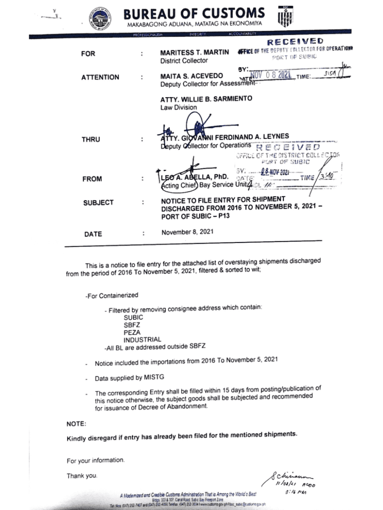 PORT USERS (2016 TO NOVEMBER 5, 2021) NOS.CNTR_NOSCONSIGNEECONSIGNEE_ADDRESS1SEGU5503331BETTER LINE STEEL TRADINGBLOCK N3 LOT 5 SAN FRANCISCO 1 DASMARINAS CITY CAVITE 4114 PHILIPPINES2SEGU8064628BEN